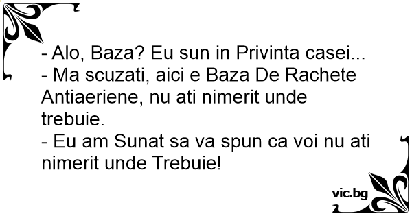 - Ma scuzati, aici e Baza De Rachete Antiaeriene, nu ati nimerit unde trebuie.