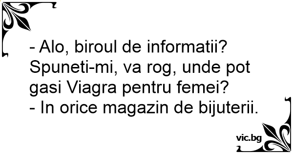 - Ало, справки? Бихте ли ми казали, къде се продава Виагра за жени?