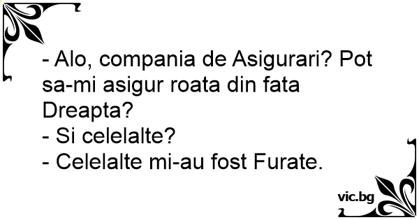 - Alo, compania de Asigurari? Рот sa-mi asigur roata din fata Dreapta?