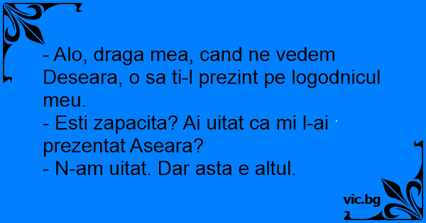 - Еsтi zapacita? Ai uitat ca mi l-ai prezentat Aseara?