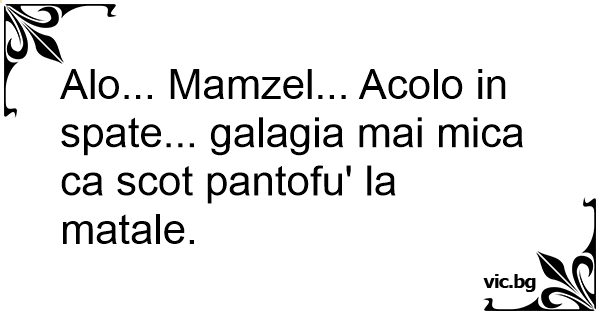 Alo... Mamzel... Acolo in spate... galagia mai mica ca scot pantofu' la matale.