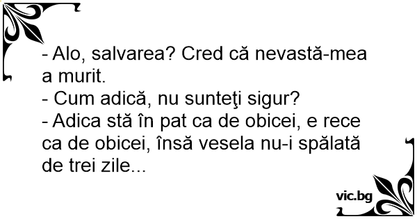 - Alo, salvarea? Cred că nevastă-mea a murit.