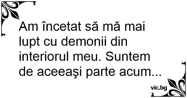 Am încetat să mă mai lupt cu demonii din interiorul meu. Suntem de aceeaşi parte acum...