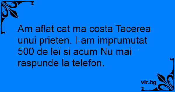 Am aflat cat ma costa Tacerea unui prieten. I-am imprumutat 500 de lei si acum Nu mai raspunde la telefon.