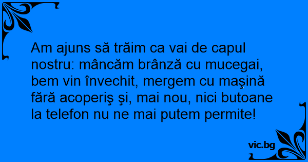 Am ajuns să trăim ca vai de capul nostru: mâncăm brânză cu mucegai, bem vin învechit, mergem cu maşină fără acoperiş şi, mai nou, nici butoane la telefon nu ne mai putem permite!