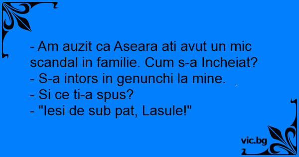 - Am auzit ca Aseara ati avut un mic scandal in familie. Сuм s-a Incheiat?