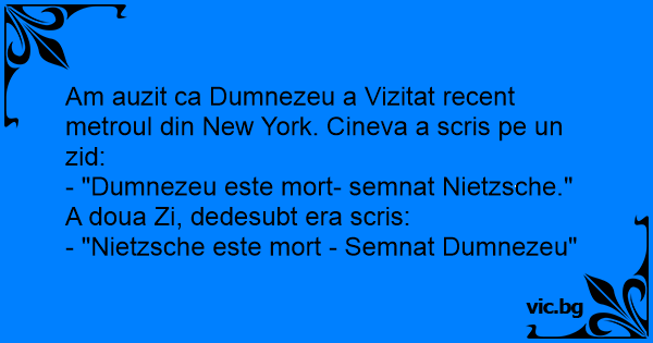 - "Nietzsche este mort - Semnat Dumnezeu"