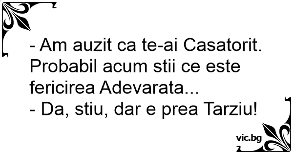 - Am auzit ca te-ai Casatorit. Probabil acum stii ce este fericirea Adevarata...