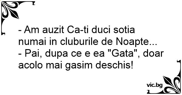 - Am auzit Ca-ti duci sotia numai in cluburile de Noapte...