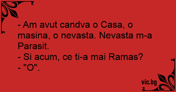 - Am avut candva o Casa, o masina, o nevasta. Nevasta m-a Parasit.
