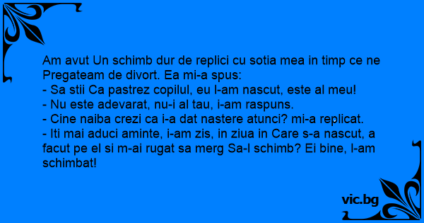 Am avut Un schimb dur de replici cu sotia mea in timp ce ne Pregateam de divort. Ea mi-a spus:
