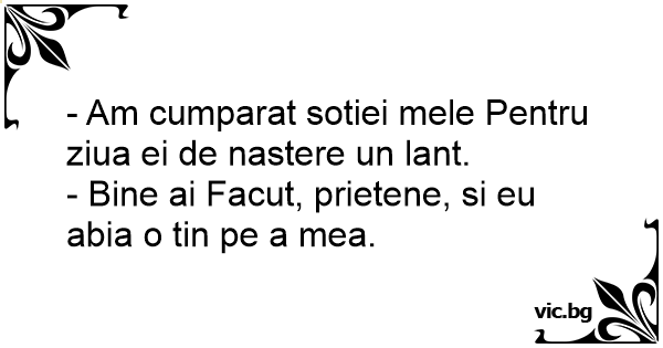 - Am cumparat sotiei mele Pentru ziua ei de nastere un lant.