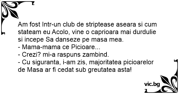 Am fost Intr-un club de striptease aseara si сuм stateam eu Acolo, vine o caprioara mai durdulie si incepe Sa danseze pe masa mea.