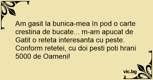 Am gasit la bunica-mea In pod o carte crestina de bucate... m-am apucat de Gatit o reteta interesanta cu peste.