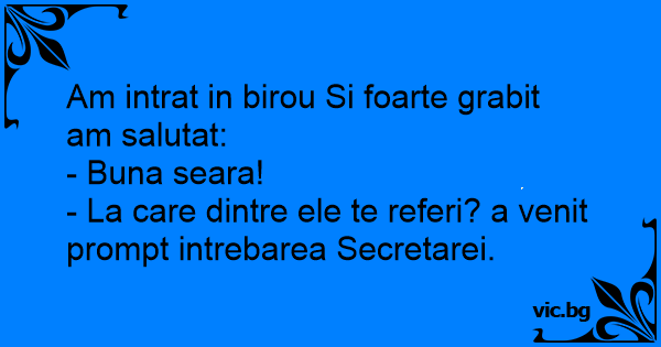 Am intrat in birou Si foarte grabit am salutat: