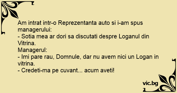 - Sotia mea ar dori sa discutati despre Loganul din Vitrina.