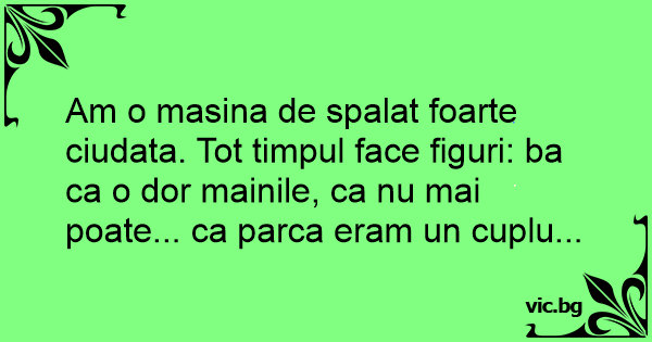 Am o masina de spalat foarte ciudata. Tot timpul face figuri: ba ca o dor mainile, ca nu mai poate... ca parca eram un cuplu...