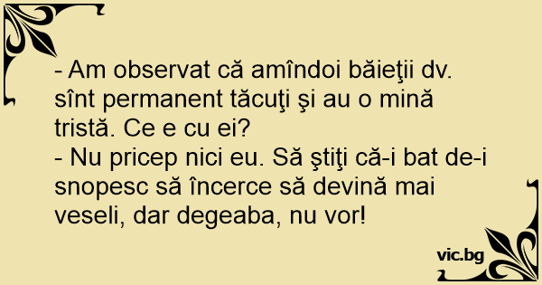 - Am observat că amîndoi băieţii dv. sînt permanent tăcuţi şi au o mină tristă. Ce e cu ei?
