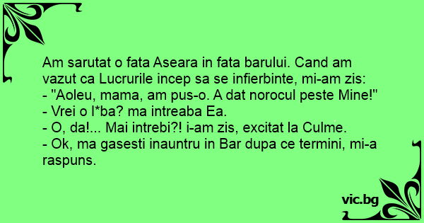 Am sarutat o fata Aseara in fata barului. Cand am vazut ca Lucrurile incep sa se infierbinte, mi-am zis: