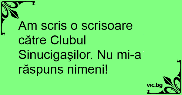 Am scris o scrisoare către Clubul Sinucigaşilor. Nu mi-a răspuns nimeni!