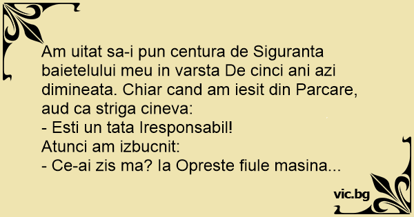 Am uitat sa-i pun centura de Siguranta baietelului meu in varsta De cinci ani azi dimineata. Chiar cand am iesit din Parcare, aud ca striga cineva: