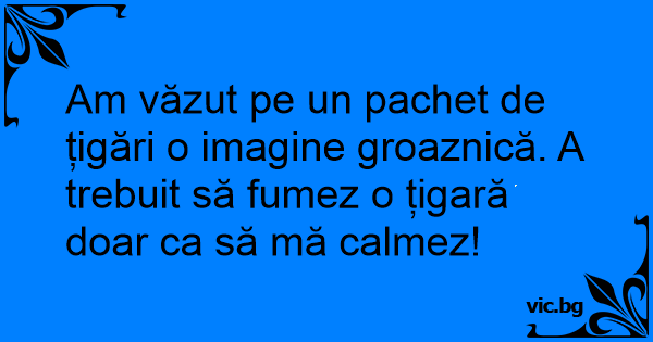 Am văzut pe un pachet de țigări o imagine groaznică. A trebuit să fumez o țigară doar ca să mă calmez!