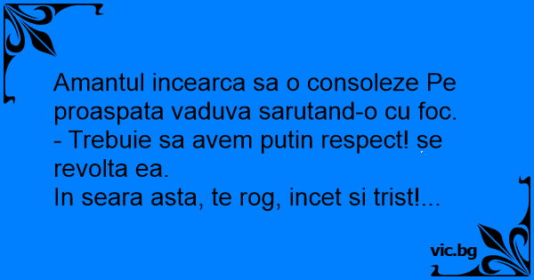 Amantul incearca sa o consoleze Pe proaspata vaduva sarutand-o cu foc.