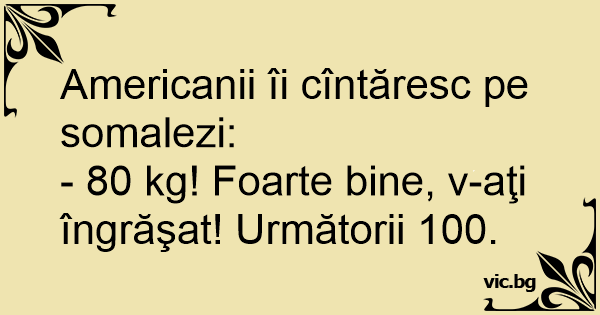- 80 kg! Foarte bine, v-aţi îngrăşat! Următorii 100.