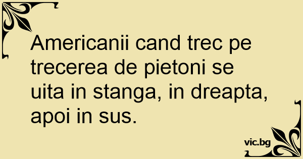 Americanii cand trec pe trecerea de pietoni se uita in stanga, in dreapta, apoi in sus.
