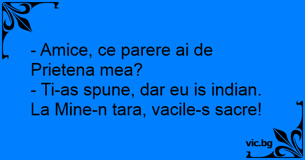 - Ti-as spune, dar eu is indian. La Mine-n tara, vacile-s sacre!