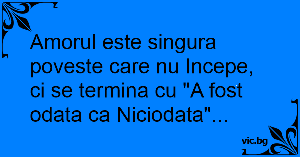 Amorul este singura poveste care nu Incepe, ci se termina cu "A fost odata ca Niciodata"...