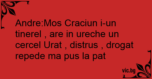 Andre:Mos Craciun i-un tinerel , are in ureche un cercel Urat , distrus , drogat repede ma pus la pat