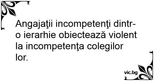 Angajaţii incompetenţi dintr-o ierarhie obiectează violent la incompetenţa colegilor lor.