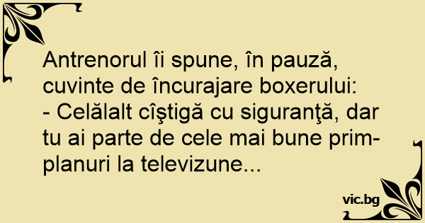 - Celălalt cîştigă cu siguranţă, dar tu ai parte de cele mai bune prim-planuri la televizune...