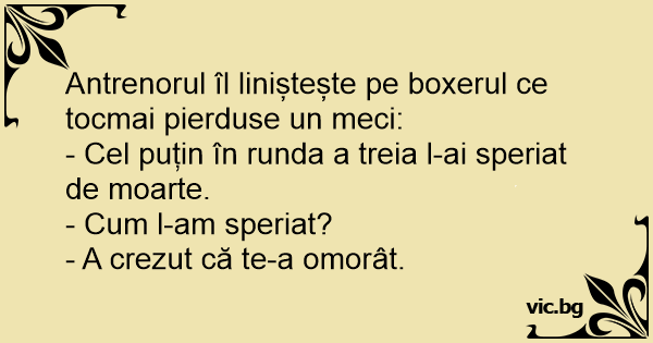 - Cel puțin în runda a treia l-ai speriat de moarte.