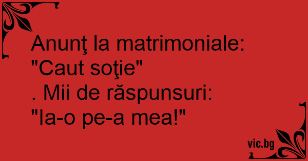 Anunţ la matrimoniale: