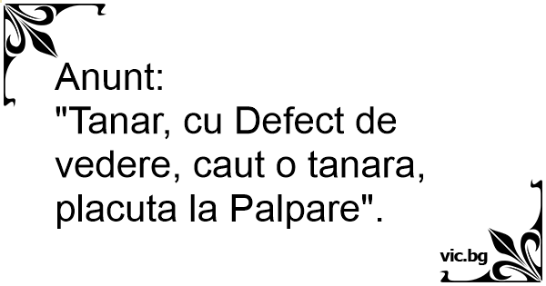 "Tanar, cu Defect de vedere, caut o tanara, placuta la Palpare".