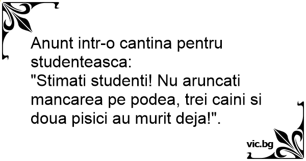 "Stimati studenti! Nu aruncati mancarea pe podea, trei caini si doua pisici au murit deja!".