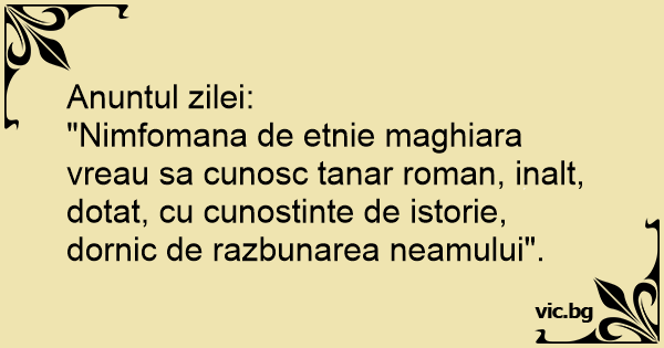 "Nimfomana de etnie maghiara vreau sa cunosc tanar roman, inalt, dotat, cu cunostinte de istorie, dornic de razbunarea neamului".