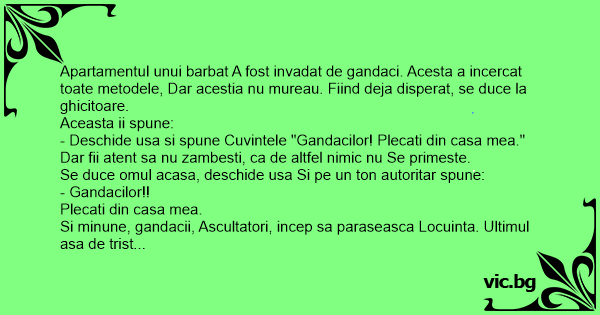 Apartamentul unui barbat A fost invadat de gandaci. Acesta a incercat toate metodele, Dar acestia nu mureau. Fiind deja disperat, se duce la ghicitoare.