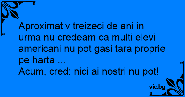 Aproximativ treizeci de ani in urma nu credeam ca multi elevi americani nu рот gasi tara proprie pe harta ...
