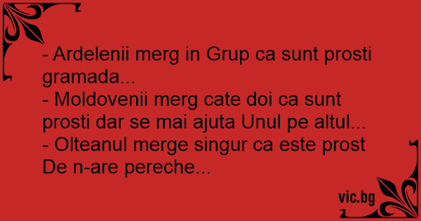 - Olteanul merge singur ca este prost De n-are pereche...