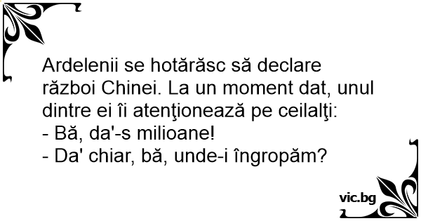 Ardelenii se hotărăsc să declare război Chinei. La un moment dat, unul dintre ei îi atenţionează pe ceilalţi: