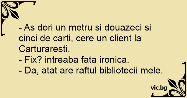 - As dori un metru si douazeci si cinci de carti, cere un client la Carturaresti.