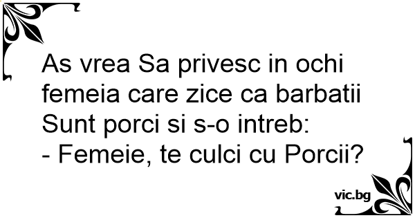 As vrea Sa privesc in ochi femeia care zice ca barbatii Sunt porci si s-o intreb: