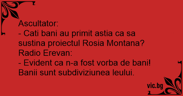 - Evident ca n-a fost vorba de bani! Banii sunt subdiviziunea leului.