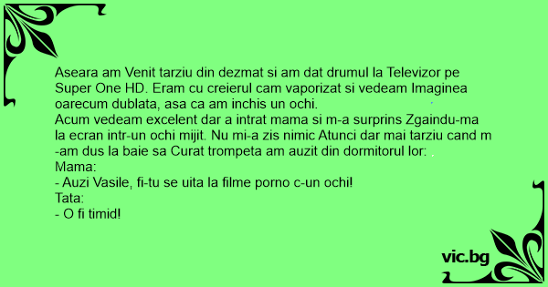 - Auzi Vasile, fi-tu se uita la filme роrnо c-un ochi!