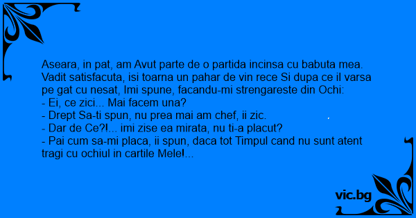 Aseara, in pat, am Avut parte de o partida incinsa cu babuta mea.