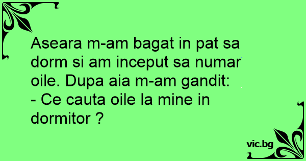 Aseara m-am bagat in pat sa dorm si am inceput sa numar oile. Dupa aia m-am gandit: