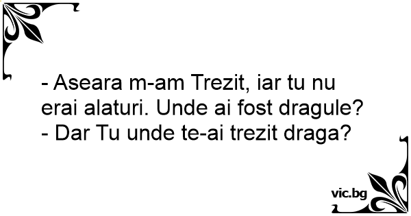 - Aseara m-am Trezit, iar tu nu erai alaturi. Unde ai fost dragule?